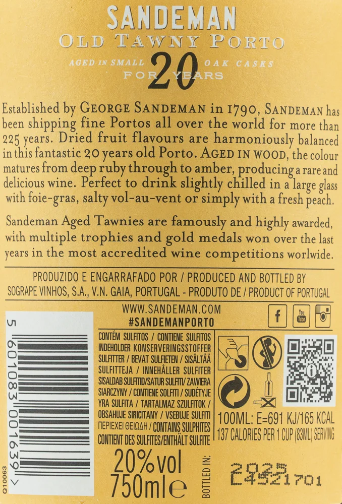 Začiatky tohto vinárstva siahajú do roku 1790, keď si mladý Škót George Sandeman požičal od svojho otca 300 libier a založil značku Sandeman. Dnes je Sandeman jedným z najznámejších a najuznávanejších výrobcov Portských vín and Sherry na svete.
